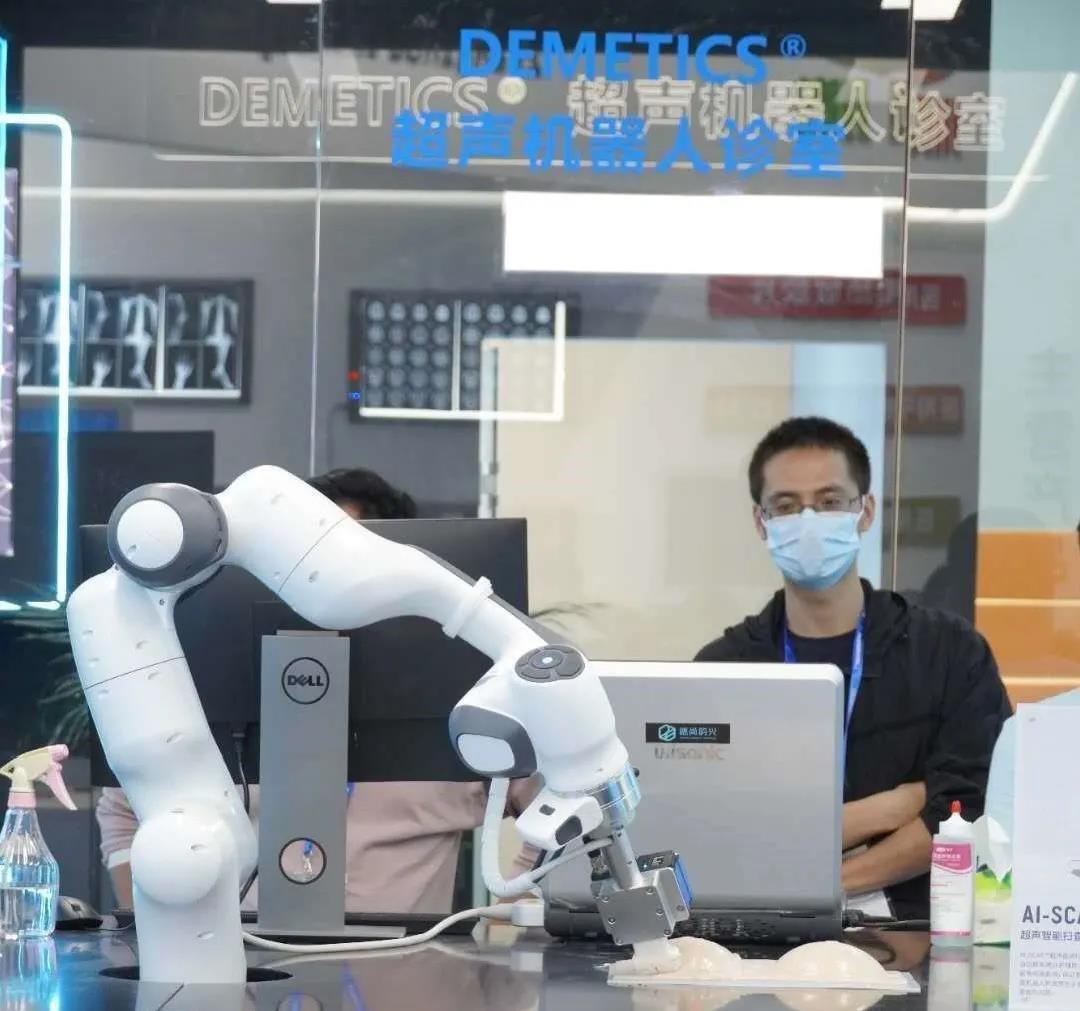 医生通过手势控制,语音控制,或者脚踏板控制来告诉机器人他需要什么工具。机器人快速识别后将工具传递给医生。此类案例机器人多以助手的形式出现如传递物品,辅助定位,预判报警等,机器人并不直接参与手术或治疗,在一定程度上降低了项目的风险,增加了项目的可行性和可复制性。 在2020年的医博会上(CMFF2020)由德尚韵兴发布的扫查机器人,可模仿医生扫查手法,支持各种角度全自动扫查。主动柔顺技术可以解决呼吸影响,保证安全并提高成像质量,此类案例机器人当作医生的执行手臂,代替医生的手部动作,但机器人本身并不参与分析(搭载其他智能分析软件后可执行分析),将扫查行为标准化和可远程化是本项目的一个技术亮点。 伴随着人口的老龄化,独居老人或肢体受伤类病人的护理问题受到了国内外医疗科技公司的关注。下图是某知名科技公司联手Franka Emika 开发的护理机器人。应用Franka机器人独特的力敏感性,接触式帮助患者进行肢体动作。也可以通过机器人完成取药倒水等动作。 受新冠影响,国内外多家医疗科技公司使用Franka Emika 机器人做鼻和咽喉的Covid-19筛查。在国内,云百生联合深圳市罗湖医院集团开发的鼻拭子机器人在技术上取得了非常大的突破。通过视觉引导实现面部跟踪,雷达探头确认鼻球位置精准的判断了鼻腔的位置,再通过机器人的力敏感度探入式进入鼻腔,较高的力敏感度确保人有舒适的体验。 由Franka Emika GmbH 的控股公司TQ-group联合国内某知名理疗公司联合开发的刮痧机器人在一定程度上论证了力控技术在与人接触式开放环境中的必要性。通过简单的几点示教,机器人不需要视觉判断就能根据力反馈完成背部的刮痧任务。 总结:医疗领域机器人的应用面临的问题是巨大的,但前景也是巨大的。只有做好充分的准备和探索,才能在不久的将来抓住机遇,乘风向前。