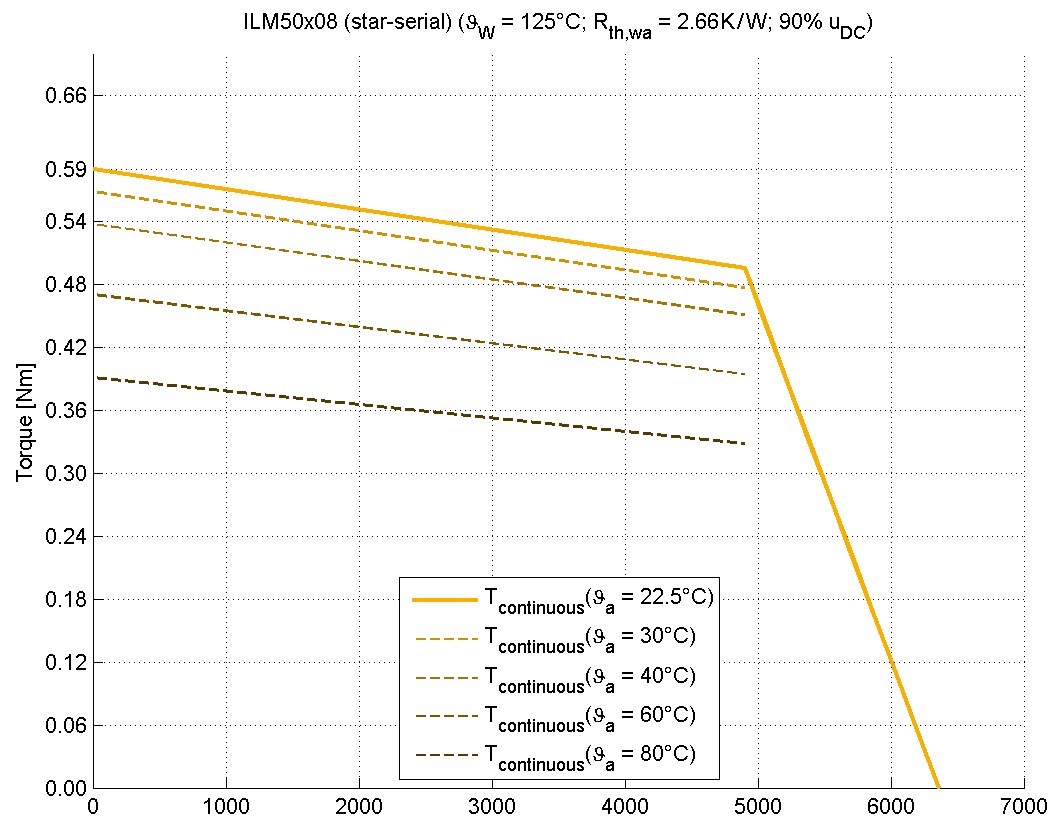 上图是T&n曲线,不同温度下,torque(扭矩)和speed(转速即n)的理想曲线图。根据这个曲线结合实际工况来确定选型