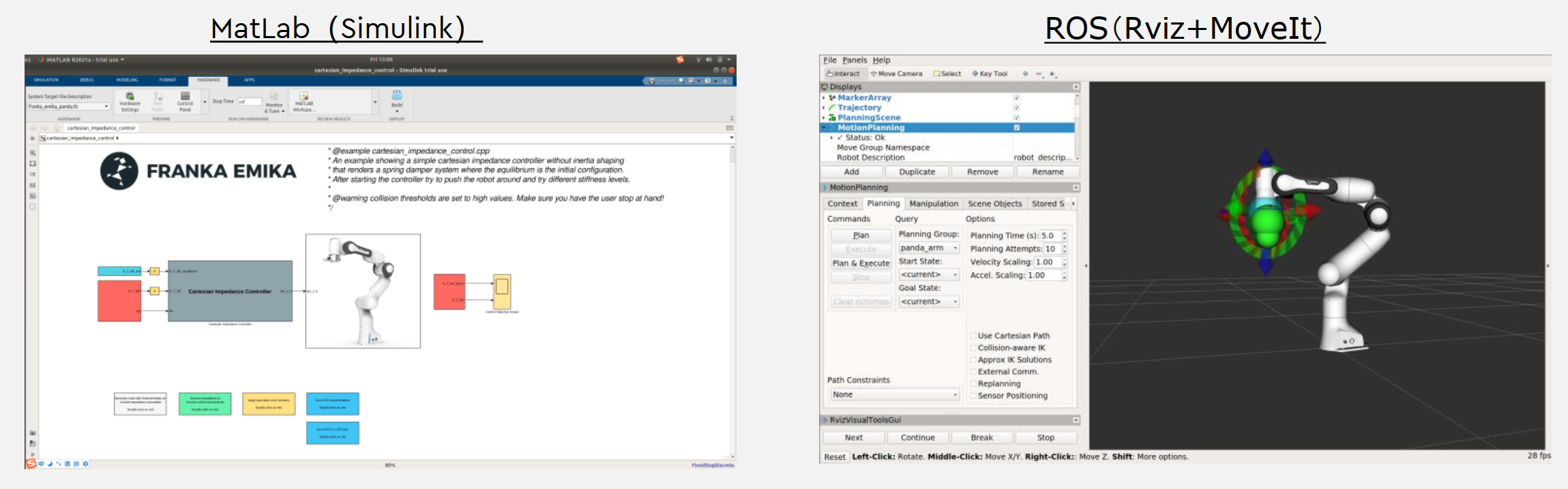 Franka Emika开源版机器人附加的控制接口FCI (Franka Control Interface),是开展力控制、运动算法、抓取策略、交互场景和机器学习等研究和测试的理想平台。用户借助 FCI 可与机器人的本体和抓手建立快速的底层双向连接。 激活 FCI即可通过快速、直接的底层双向通信将工作站 PC 连接到 机器人系统。这样可以提供机器人的当前状态并对其实施1 kHz的实时控制 。开源机器人完美支持ROS,MoveIt,MATLAB,Simulink!。